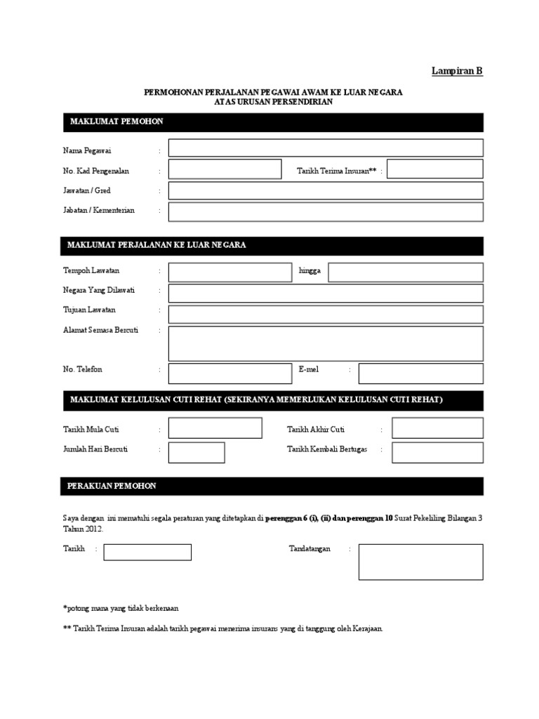 Lampiran B Borang Permohonan Perjalanan Pegawai Awam Ke Luar Negara Atas Urusan Persendirian Latest Pdf
