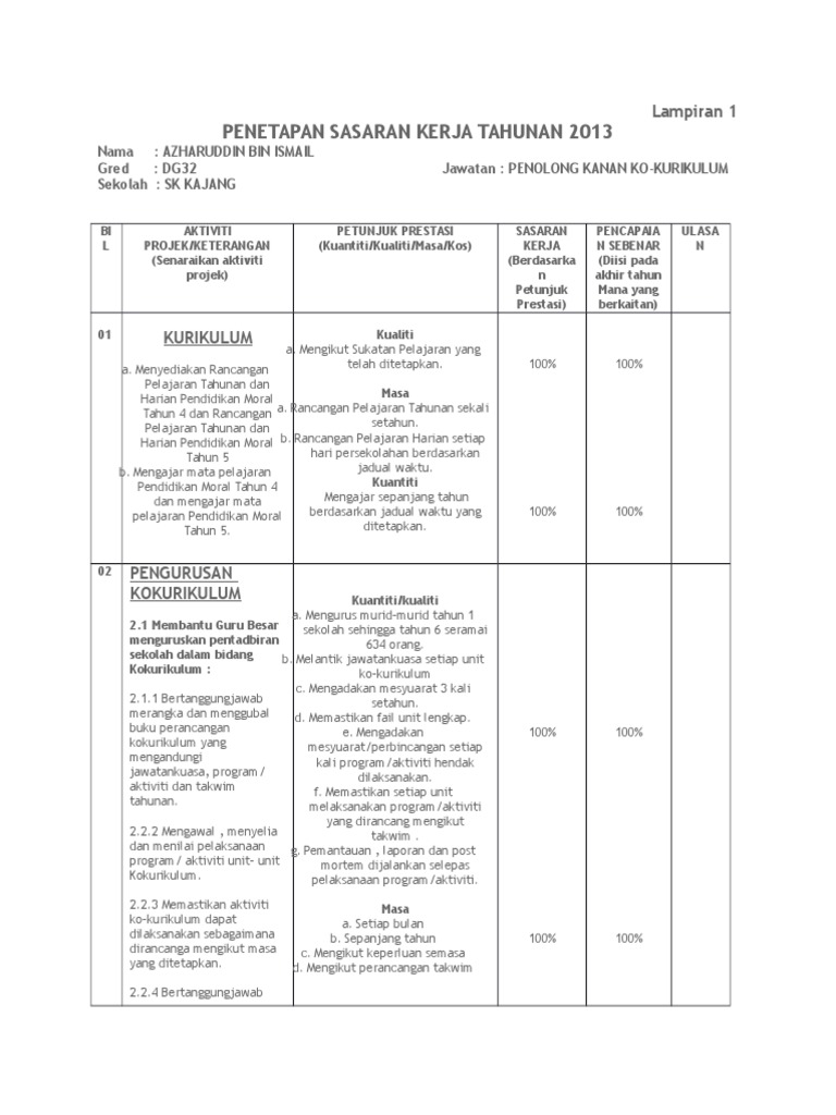 Contoh Sasaran Kerja Tahunan Gpk Ko