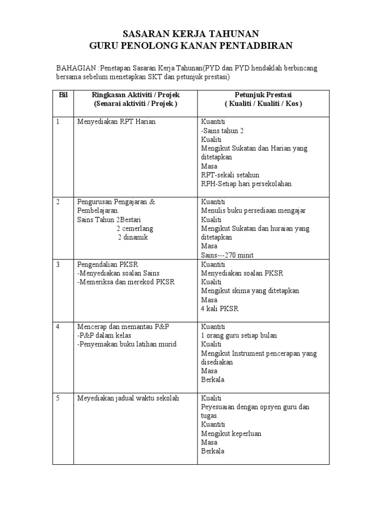 Sasaran Kerja Tahunan Guru Prasekolah Pdf